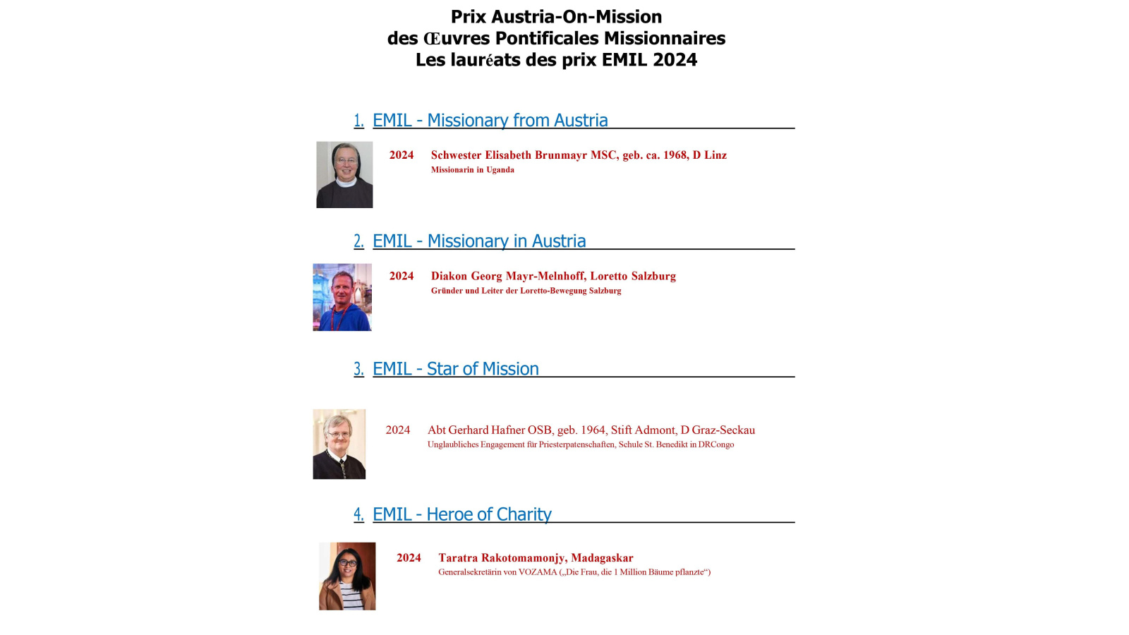 Missio est une œuvre pontificale missionnaire active dans 150 pays du monde, et aussi l’un des principaux bailleurs de Vozama. Accompagnés d’un journaliste et deux autres représentants venus d’Autriche sont récemment venus effectuer un reportage sur les activités de l’ONG en brousse, dans la région de Fianarantsoa et sur le parcours personnel et professionnel de la Directrice Générale. Objectif : Faire connaitre Vozama et ses activités aux donateurs et le grand public avant la remise du prix EMIL en novembre 2024.